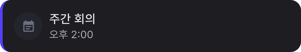 누나, 잘 자써? 호두가 오늘 일정 알려줄게!오후 2시 회의랑 우주랑 저녁 약속, 총 2개가 이써.